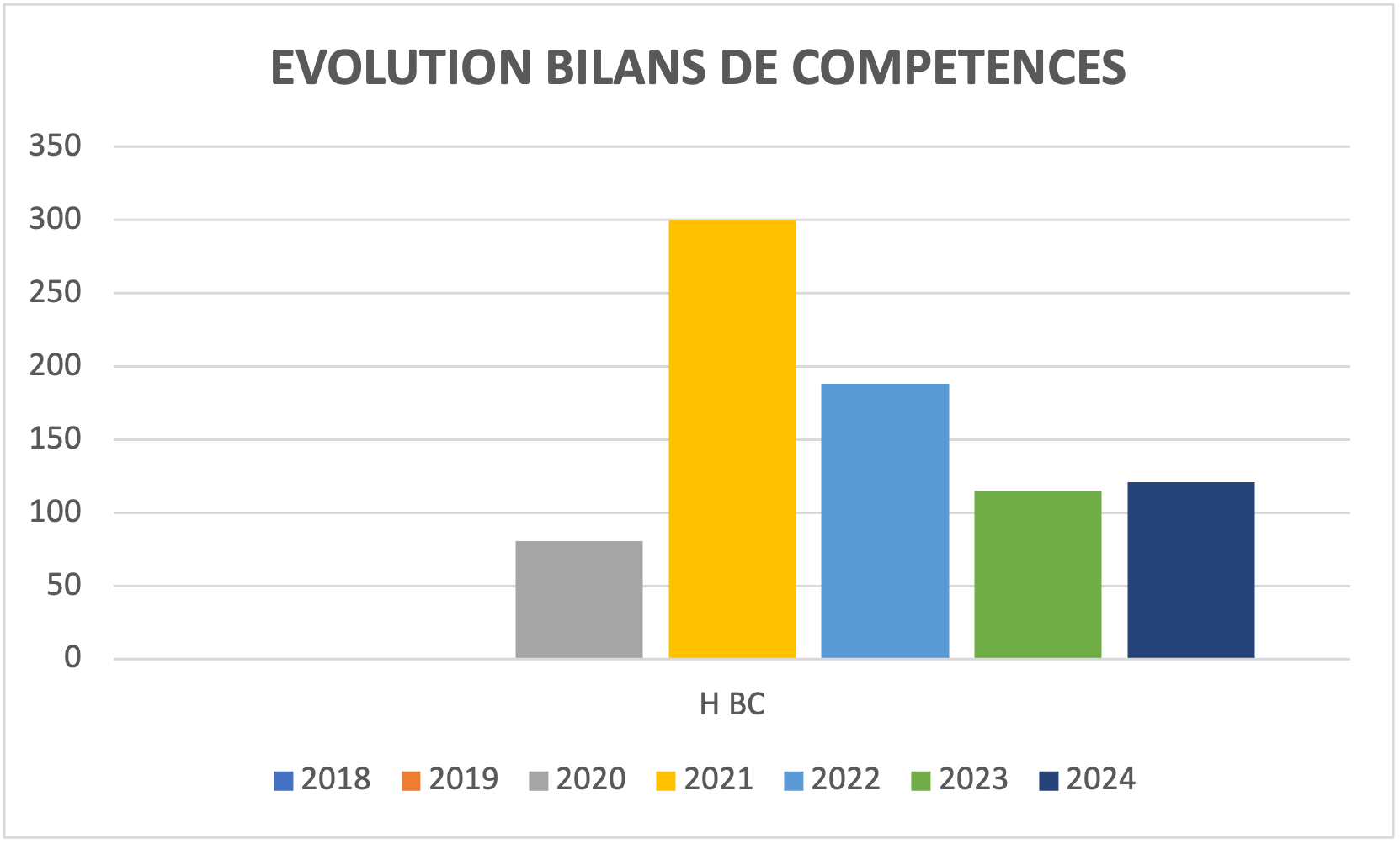 Pour l'année 2025 le nombre et les heures de bilan de compétences sont en progression par rapport à 2024. Nous comptabilisons 16 bilans pour un total de 133,5 heures.